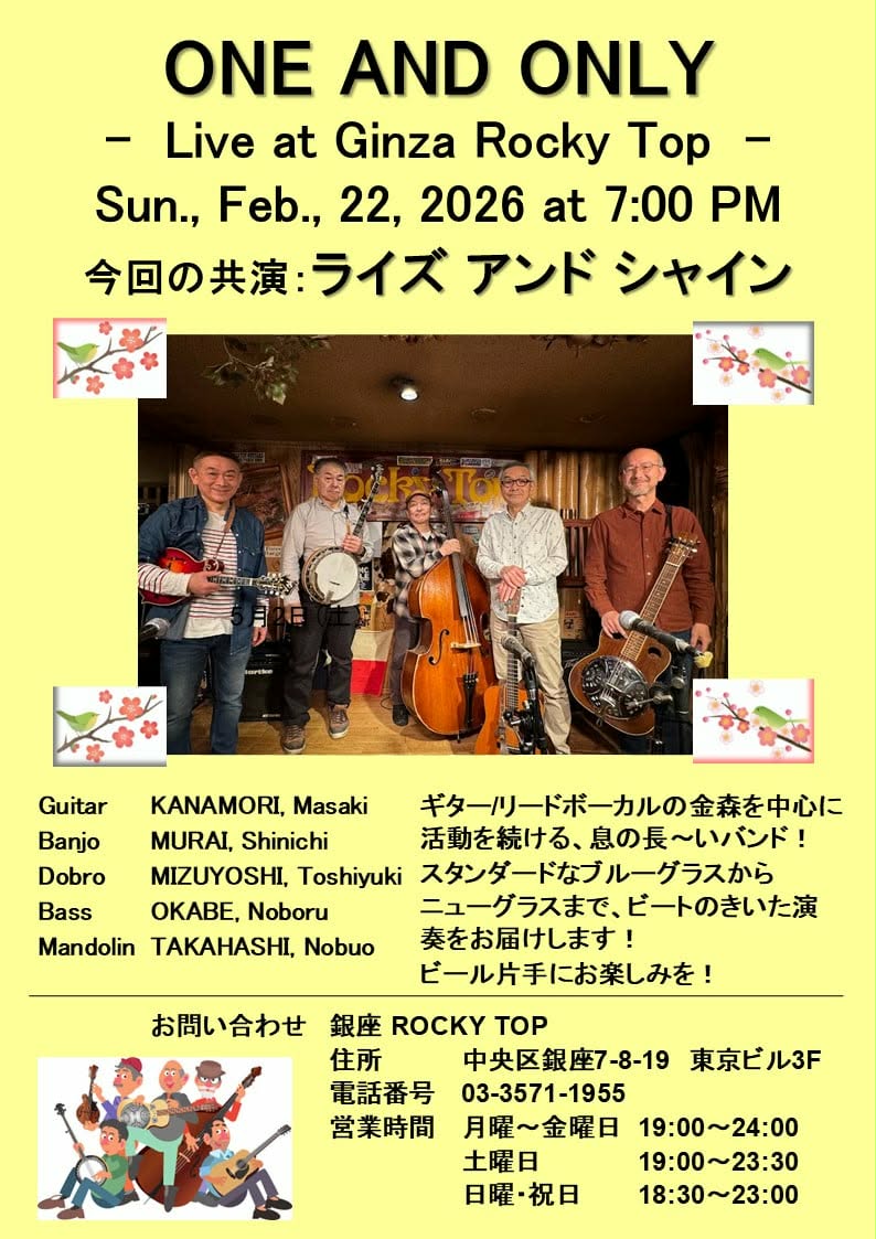 • Steve Kusaka v.s Johnny Nakagawa v.s Smily Shun / SING BLUEGRASS,COUNTRY,FOLKSONG and MORE!2026年2月16日